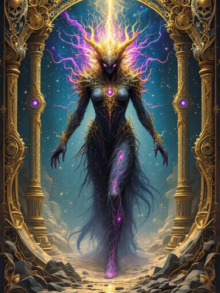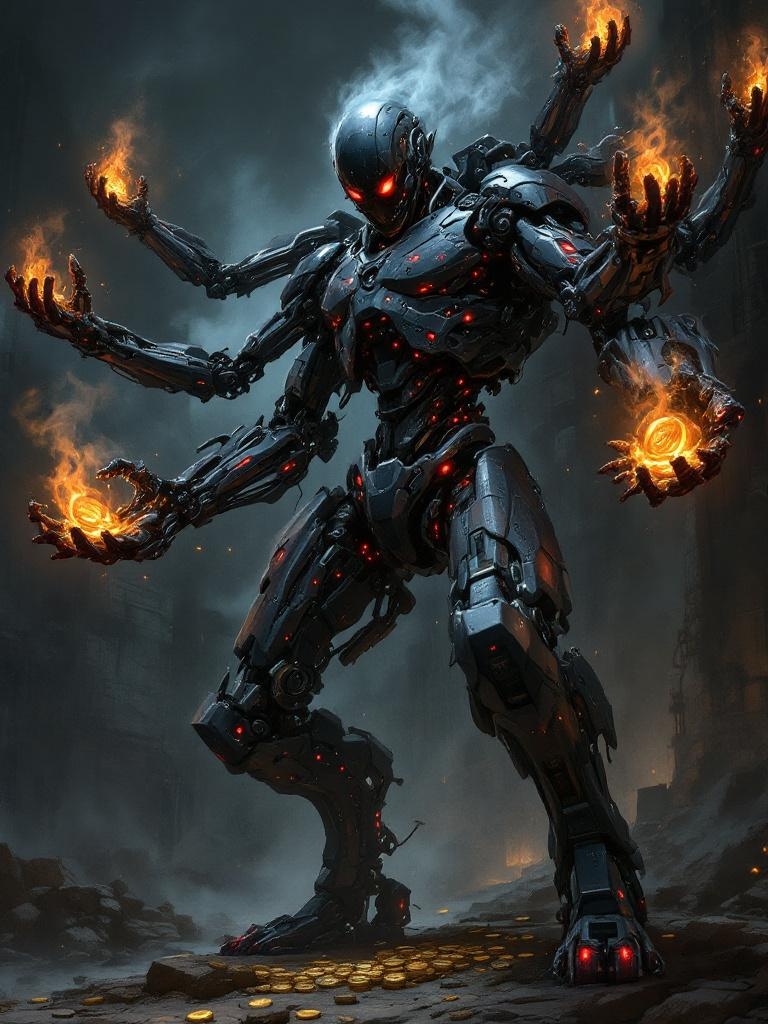 A construct forged from pure Monad throughput. Each limb processes a different transaction. It doesn't walk โ it pipelines.